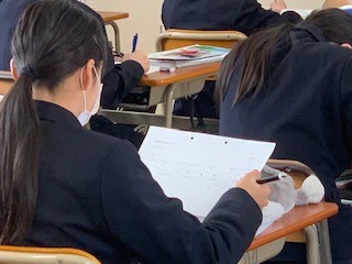 1組は理科です。元素記号のテストです。合格するまで何度も取り組みます。