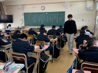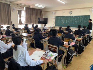 2組は国語です。詩の種類分けを学習しました。詩には叙情詩・叙景詩・叙事詩があり、学習する朝のリレーは叙情詩にあたります。