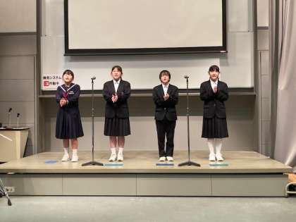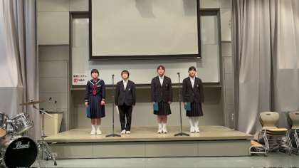 5月3日(水)は、古代市という地域のイベントで、合唱部の発表がありました。地域での披露ということで"様々年代の人に楽しんでいただける合唱コンサート"をコンセプトに、4曲の歌を発表しました。1曲目は坂本九さんの『見上げてごらん夜の星を』、2曲目はジブリ映画「天空の城ラピュタ」のテーマソングである『君をのせて』、3曲目はテレサ・テンさんの『時の流れに身を任せ』、4曲目はディズニー映画「ズートピア」より『トライエブリシング』を演奏しました。最後の曲となる『トライエブリシング』では、自分たちで考えた振り付けを披露し、会場を盛り上げました。