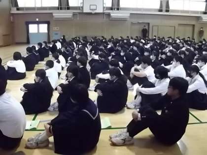 「いじめ(いのち)について考える日」は、自分の心や友だちの心を見つめ直し、考える日です。人は心が体を動かしています。美しく優しい心を持った人は、誰からも好かれる行動をします。逆に、心無い人は人を傷つけたり人から嫌われたりする行動をします。みなさんには、「自分がされたら嫌と思うことを人にはしない」、さらには「相手がどう感じているかを考えて行動することができる」という心ある人になってもらいたいと思っています。みなさん一人ひとりが、再度このことを確認し、互いに尊重し合い助け合うことのできる集団の一員になってください。人間だから間違ってしまうこともあると思います。それに気づいた時には速やかに過ちを正してください。