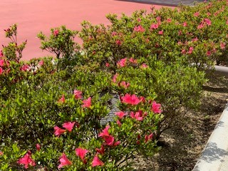 5月は「皐月」です。中庭の「さつき」が、頃を合わせたかのように、初夏の日差しに映える鮮やか花を咲かせています。
