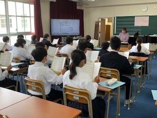 続いて「はるかな道へ」の歌唱練習をしました。高音がしっかりのびやかな歌声を響かせていました。
