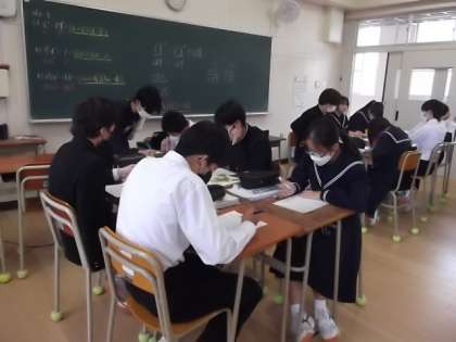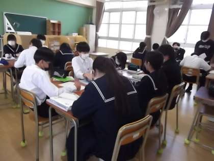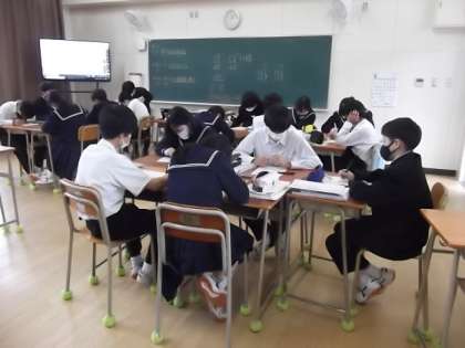 因数分解の授業をしました。少しずつ難しい問題にチャレンジし、解答を発表したり、グループで学習したりしながら進めていきました。問題を解けたときに達成感の持てる授業でした。