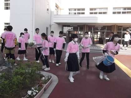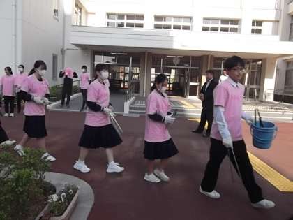 生徒議会のメンバーを中心にクリーンアップ活動として地域の清掃活動を行いました。思った以上に多くのゴミを回収し、地域の方々にもあいさつできました。清々しい一日の始まりです。