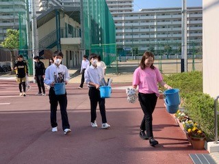 クリーンアップ活動を終えた生徒議会メンバーは、引き続いて挨拶運動やゴミの分別・後片づけと早朝からフル活動してくれました。ありがとうございました。