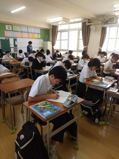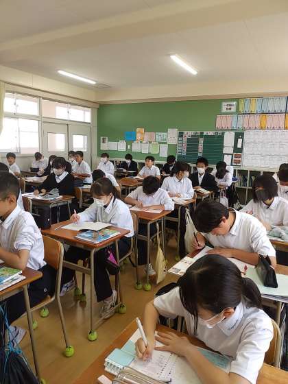 鉄砲伝来により、どんな影響があったのか。弓矢との特徴とはどんな違いがあったのかを学習しました。自分でノートをまとめる時間と教え合う時間をとり、学びを深めていました。