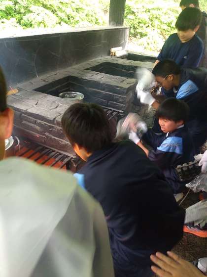 野外炊事の様子です。
