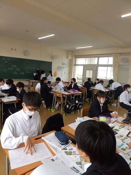 植物の分類について学習しました。班ごとに分かれて教え合いながら授業を進めました。黒板を使って回答を発表しました。
