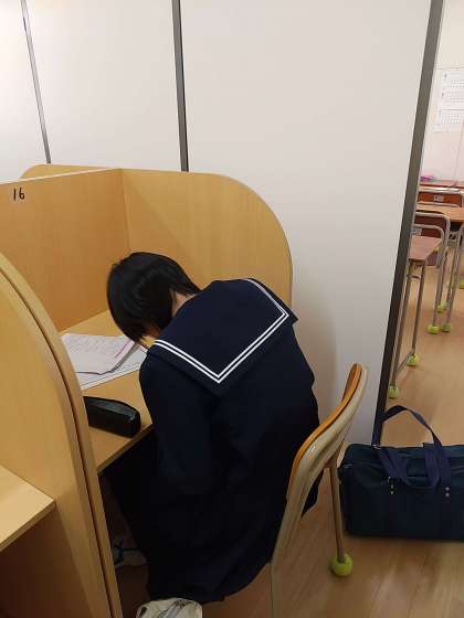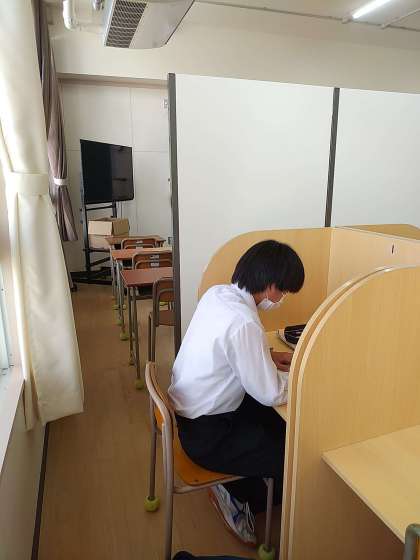 学習室を開放し、自主学習をしている学年があります。自分なりのペースで一生懸命に頑張っています。良い結果につながって欲しいですね。
