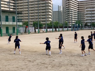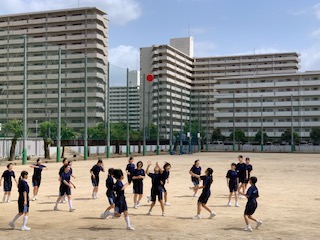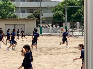 体育です。アルティメットの試合をしました。スーパープレーあり珍プレーありと、楽しみながら取り組んでいました。