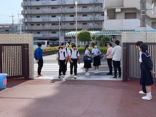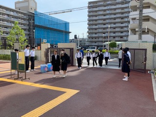 朝の登校風景、美化委員の活動の続きです。