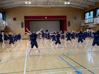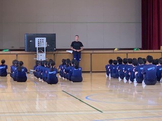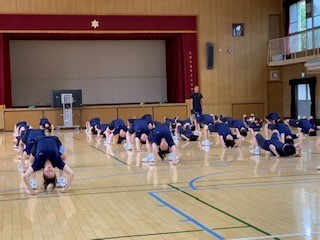 2年生の体育・松井先生が研究授業を行いました。ラジオ体操、補強運動をして、アルティメットの競技に際してルール説明を行ったあと、グランドに出て7分ミニゲームを2本行いました。ゲーム後体育館に戻り、本時の振り返りと次回の説明をしました。