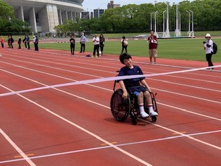 第66回の合同運動会が長居第二競技場にて行われました。本校からは4名が参加し、猛暑の中、50m走や大玉転がし、ドリブルレースなど計7競技を互いに協力し切磋琢磨しながら頑張りました。