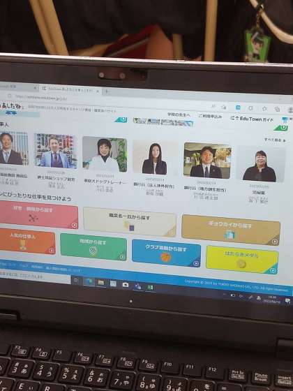 昨日に引き続き、キャリア教育として職業調べをしました。タブレットを使いながら、自分の考える職業にはどのようなものがあるのかを調べました。また、調べた結果を周りと共有し感想を相手に伝えました。