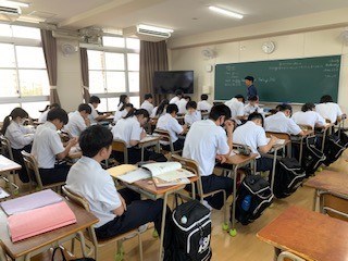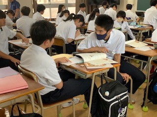 期末テスト範囲の演習として、接続詞の学習をしました。whennやbecause,ifなどの接続詞を覚えることで英語の活用方法が広がり授業の雰囲気も活気のあるものになりました。