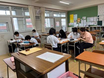 1年生で放課後に学習室を開放して学習会をしました。期末テストに向けて一生懸命に取り組みました。
