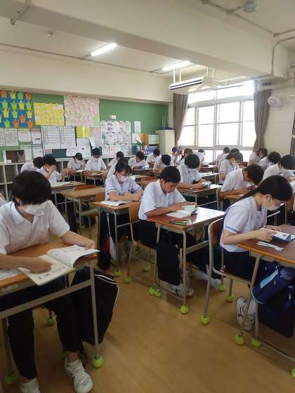 今日から1学期期末テストが3日間の日程で行われます。持てる力を十分に発揮できる3日間にしてください。写真は2限目英語のテストが始まる直前の3年生の様子です。