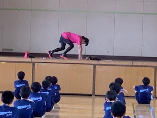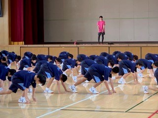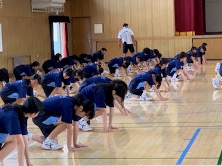 1年生は体育です。陸上競技でクラウチングスタートの練習をしました。スタートの大切さを学び、来るべき記録会で0.1秒でも早い記録を出せるようにと熱心に取り組んでいます。
