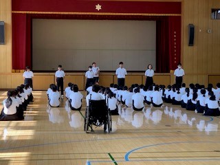 1学期最終の定例学年集会です。毎週水曜日に行われていますが、最初の頃は全員が集まるのに時間がかかりましたが、今はこの日は生徒が早めの時間に登校する事を心がけ、8時20分には集会を始めれるようになっています。学級代表からそして担当の先生からのお話もしっかり出来るようになり、また1時間目の授業にも影響なく臨めるようになりました。78期生が学校生活のなかで各自が「時間を守りきる」ことを心がけることが、みんなの「時間を創る」ことに繋がることを実践してくれました。これからの78期生の更なる成長に期待します。『凡事徹底』です。