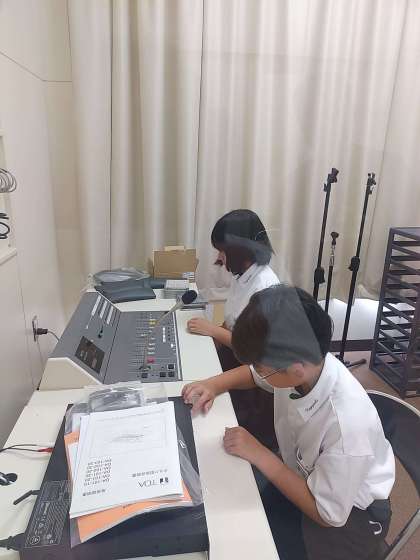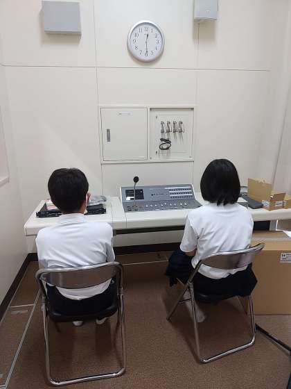 給食の時間に音楽を放送しました。生徒議会のメンバーが交代で担当し、今日は1年生の学級代表が実施しました。給食の時間の雰囲気が良くなることを期待しています。