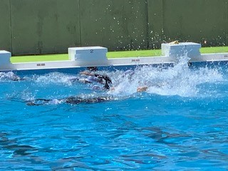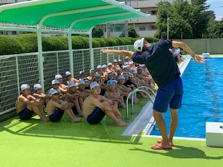 体育水泳の授業です。息継ぎのタイミングを学びました。