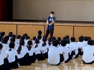 牛島先生から、「学生時代アルバイトでの体験談から、気配り、心配り(ホスピタリティ)の大切さと、自分ができること・相手にできること・周りの気配を感じること、をいつも考えられるようにしていきましょう」という話の後に、学代から、「学習室の利用の仕方について」お話しがありました。