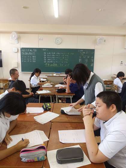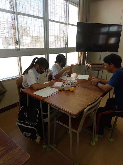 学年の先生たちと一緒に補修を進めています。卒業生もボランティアとして関わってくれています。