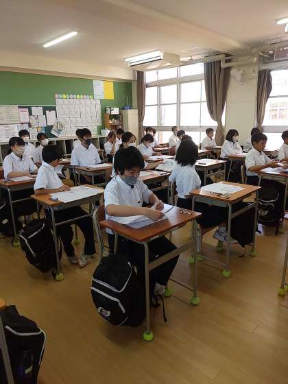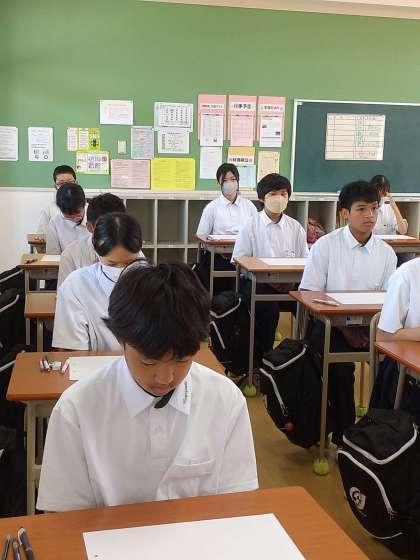 初めての実力テストです。精一杯頑張りましょう。目標は一生懸命の向こうにしかありません。目の前の問題に集中しましょう。