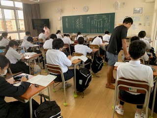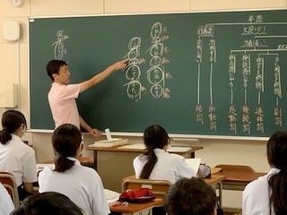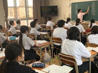 1組は国語です。文法で品詞分類表に基づき文の成り立ちを学習しています。