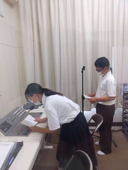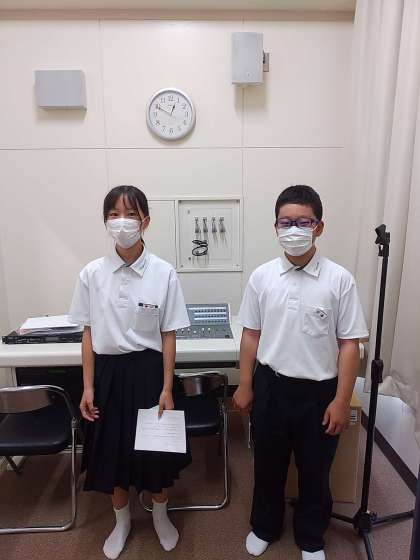 今日の給食の献立にあるヤンニョムチキンと切干し大根について栄養価などについて自分で調べてきたことを放送してくれました。