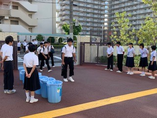 9/14(木)朝の登校風景と美化委員活動