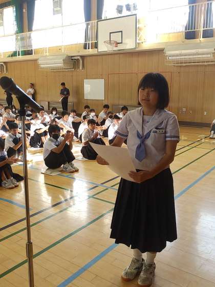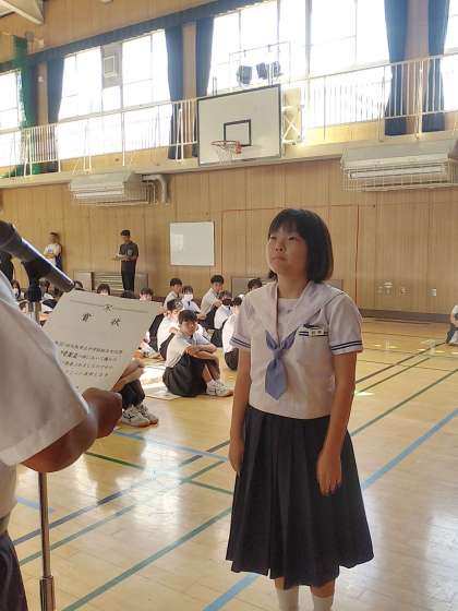 全校集会の前に表彰伝達を行いました。