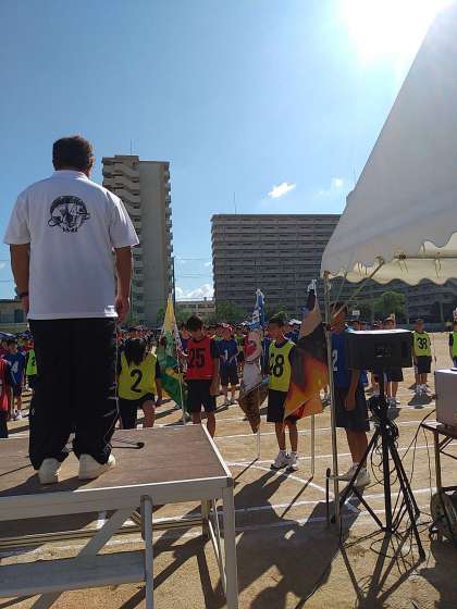 晴天の下、第74回体育大会が始まりました。今までの取り組みの成果を十分に発揮し、素晴らしい、思い出に残る体育大会になる気音を期待しています。
