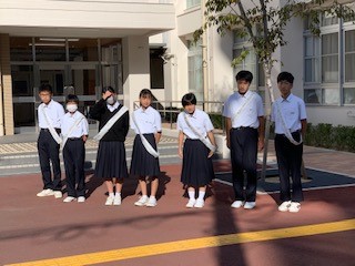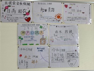 昨日より、後期生徒会役員の立候補者の選挙運動が始まりました。玄関前に候補者が立ち投票のお願いを元気な挨拶とともに繰りひろげています。