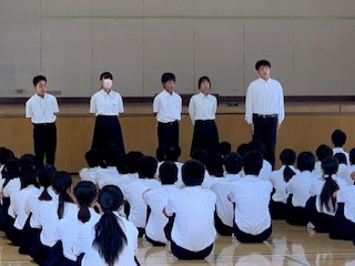 体育委員から、体育大会の個々の反省と学年・学級の体育大会の振り返りを行いました。
