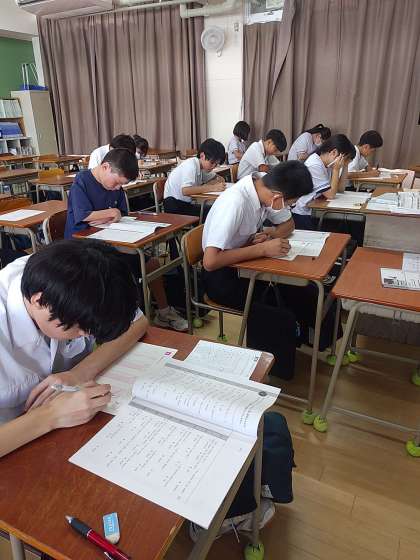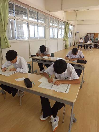 3年生で英検を受検しました。希望の受検級ごとに分かれました。自分の力を試す機会でもあり、目標の級がある人にとっては挑戦できる機会でもあります。良い結果を期待しています。