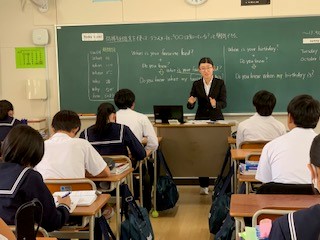 授業は間接疑問文を題材として、生徒同士で互いに質問をする形式で進めました。ビンゴ形式のゲームも取り入れながら楽しく授業を進めました。生徒からの発言も活発で、大変盛り上がりました。