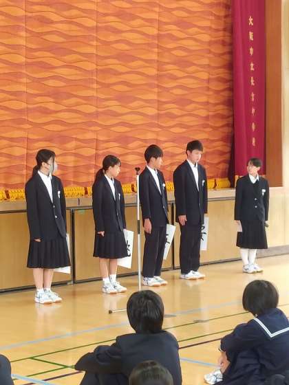 生徒会役員から文化発表会のスローガンが発表されました。