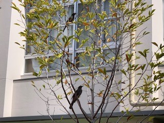 中庭には野鳥のすがたも見られました。ハッカチョウのような鳥で大きな鳴き声でした。思わず写真に撮りました。