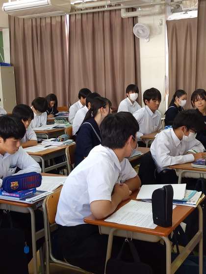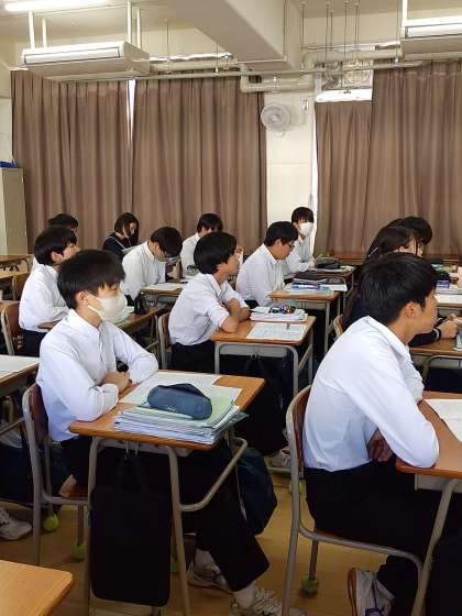 中間テストの解説の続きをやりました。集中して聞けていました。テストの振り返りをして、次に繋がるようにしていきましょう。