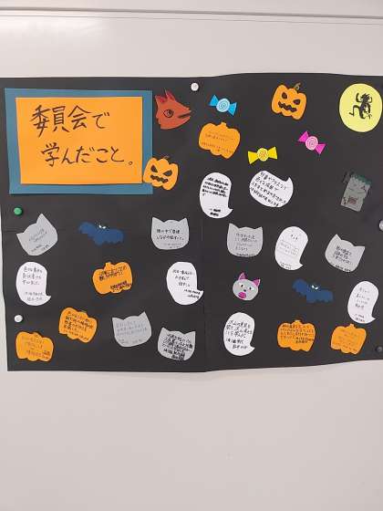 職員室前に「委員会で学んだこと」と題する掲示がされています。人前で話すことの難しさややりがい、頭の中で整理しながらはなすこと、など委員会の中で色々な経験を積みながら成長していることが分かります。今しかできないことを大切に頑張って欲しいですね。