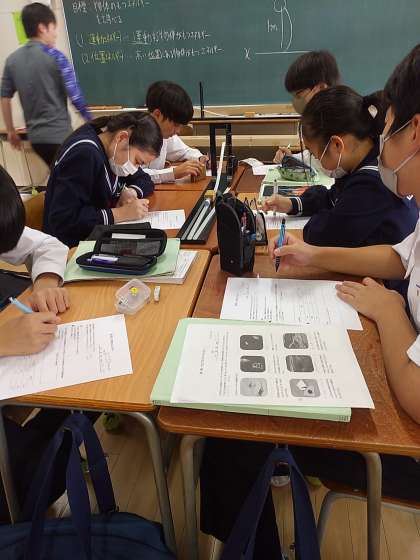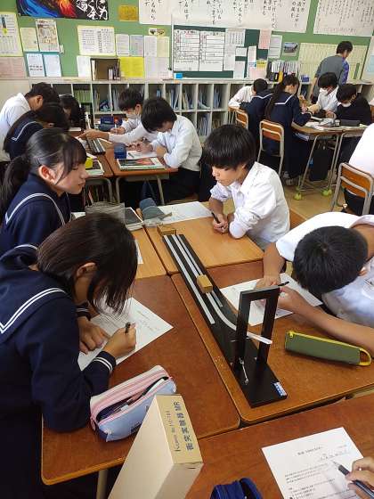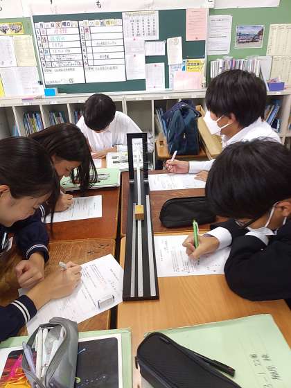 3年授業の様子です。3年1組は理科、3年2組は数学です。数学は少人数授業をしています。