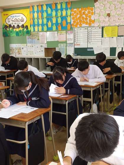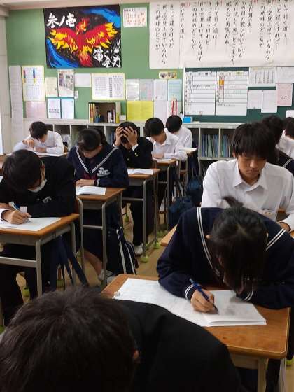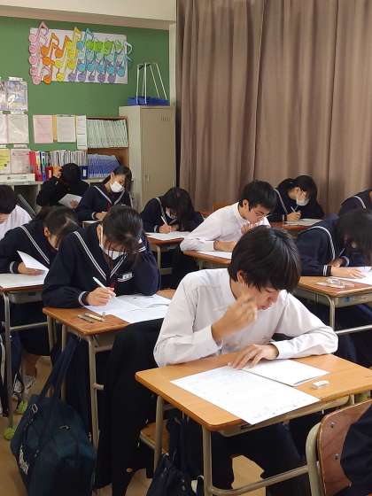 3年生は第3回実力テストを実施しました。文化発表会も終わり、進路に向かって取り組んでいく時期になりました。目の前の問題に集中しもてる力を十分に発揮しましょう。頑張れ、長中生!