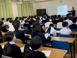 1年生は進路学習の1回目として1月10日に実施予定のチャレンジテストについて学習しました。1学期に配布されたリーフレットをもとに日々の学習やテストの大切さを理解しました。今後、進路学習として11月21日のSPトランプを行い、自分の性格を理解できるように取り組んでいきます。