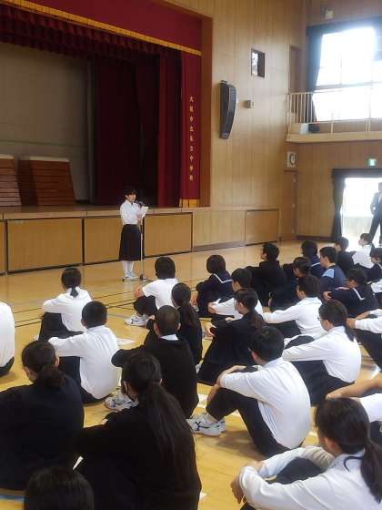 校長先生の講話の後、生徒会より11月18日(土)10時より行われるクリーアップ活動の話がありました。保護者の方々も是非、ご参加ください。