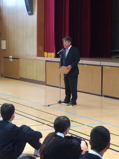 定例の全校集会を行いました。校長先生の講話を紹介します。