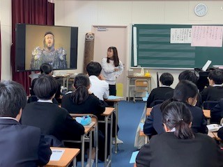 2組は音楽です。歌唱練習のあと、先週に引き続きオペラ・ミュージカル「アイーダ」のビデオ鑑賞後、オペラとミュージカルでの曲調の違いなどを考えました。
