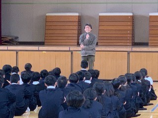 定例の1年学年集会です。林先生から、はたらくことの意味・将来の夢についてお話しがありました。