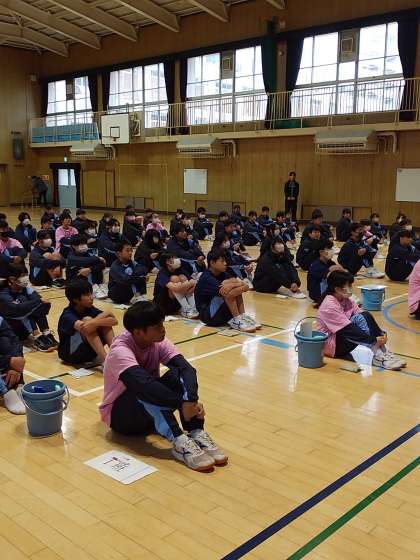 雨天のため、地域クリーンアップ活動は中止となり、生徒による校内清掃を行いました。寒い中でしたが、約100人の生徒が集まり、一生懸命に掃除をしてくれました。校舎をきれいに使い、ものを大切にする心が育まれていると思います。