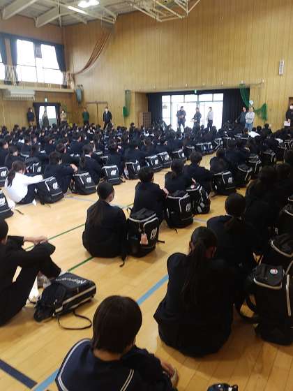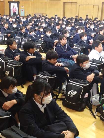 災害時や緊急下校時などの訓練として地区分団下校を行いました。居住地ごとに班をつくり、班ごとに下校しました。真剣な表情で取り組んでいました。